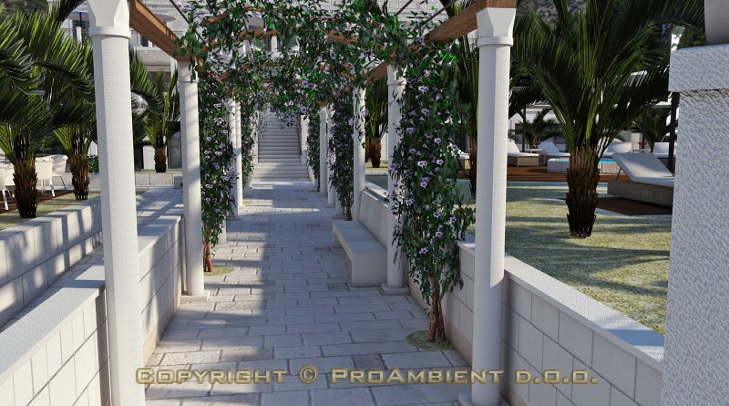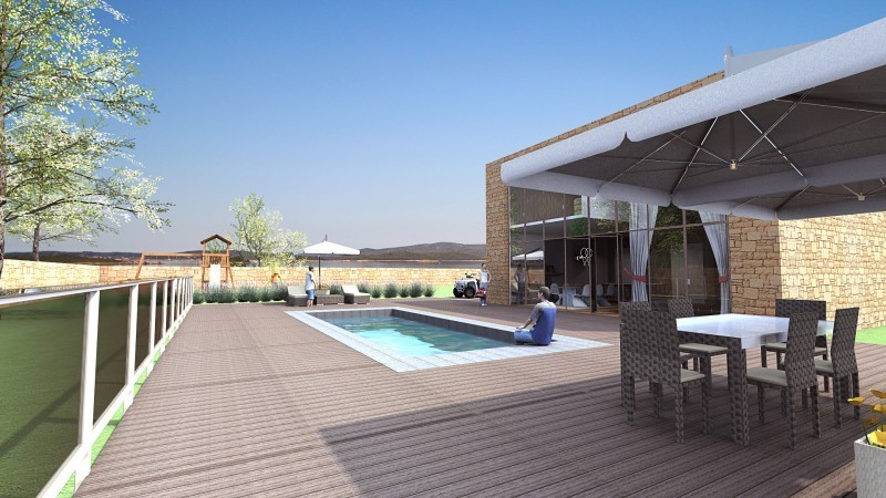 Lahko se simulira tudi razne barve fasade, ter pozicijo svetlobe in sence v različnih letnih časih in urah v dnevu. V kolikor bi imeli ob hiši bazen, pergolo, žar, igrala... se jih lahko vključi v vizualizacijo. Oglejte si referenčno hišo: vizualizacija hiše