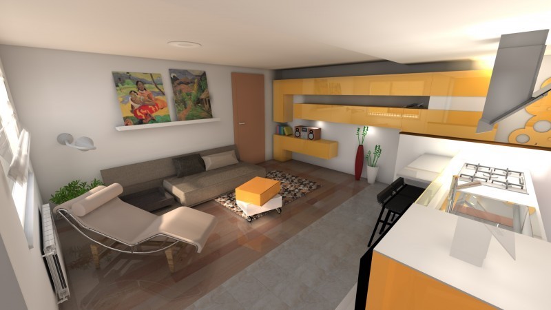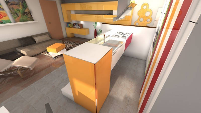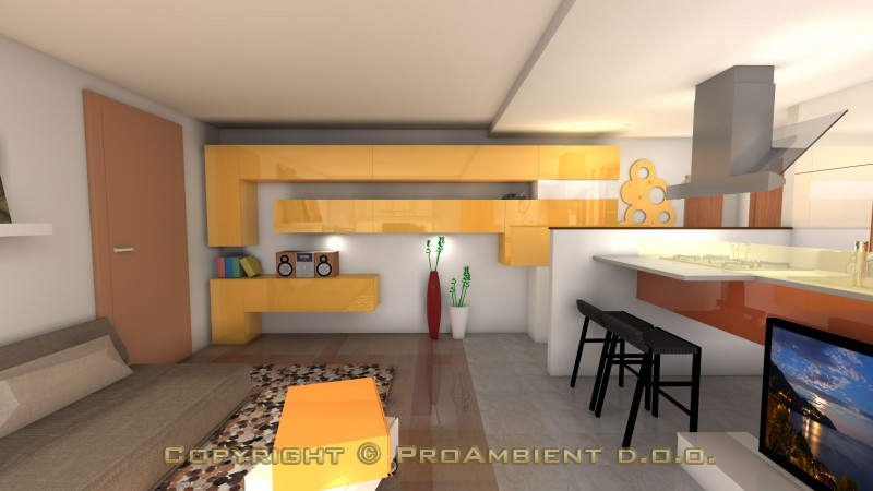 3D izris pohištva v kuhinji in dnevni sobi